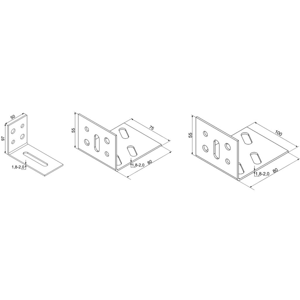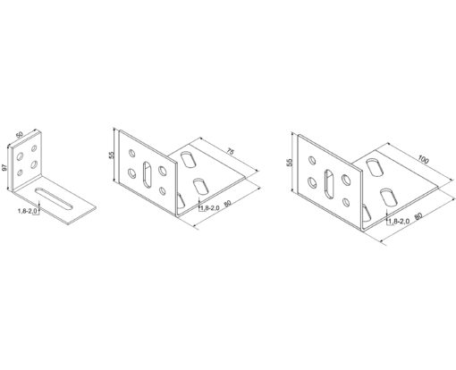 | KOUA | Kątkownik do profilu UA | 50mm 75mm 100mm | 20 |