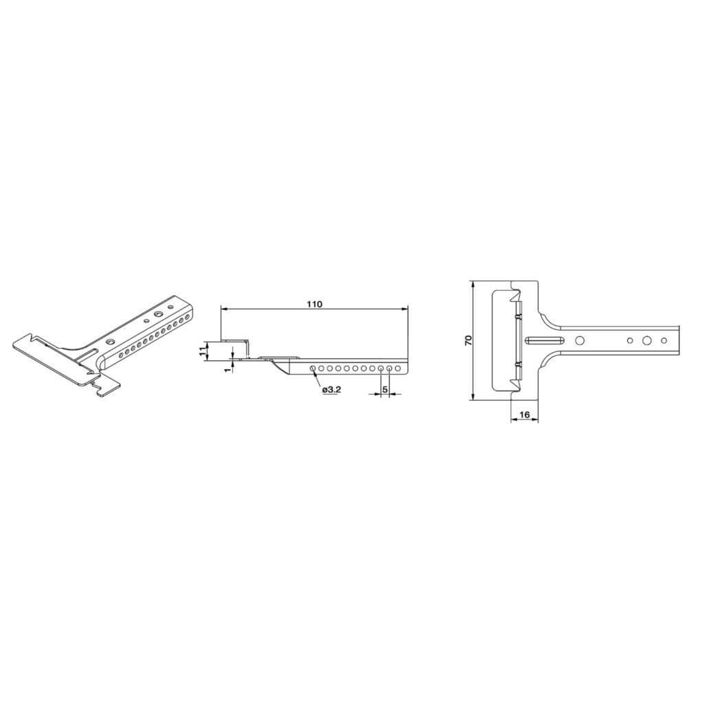 Współpracuje z wieszakiem górnym noniusza, przedłużką oraz przetyczkami.